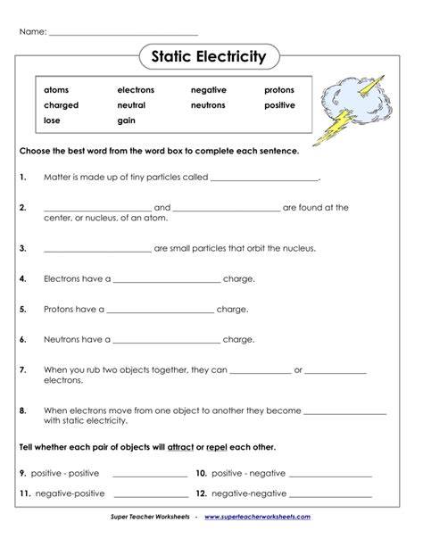Web static electricity grade 9 interactive and downloadable worksheets. Web this is a worksheet intended to be done while watching bill nye's static electricity video (season 2, episode 5). Add to my workbooks (0) download file pdf.